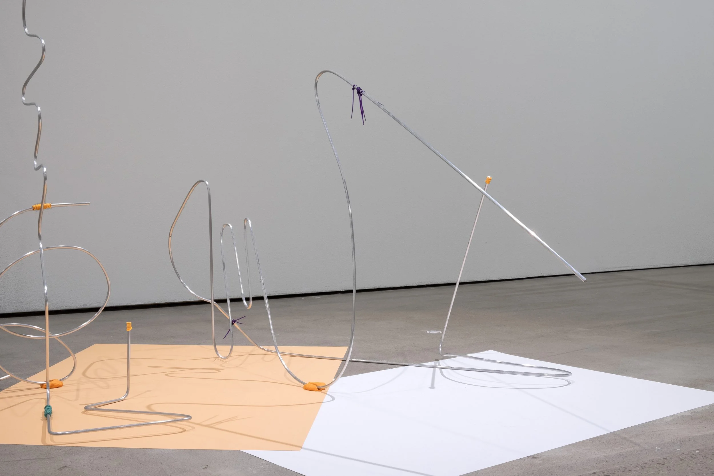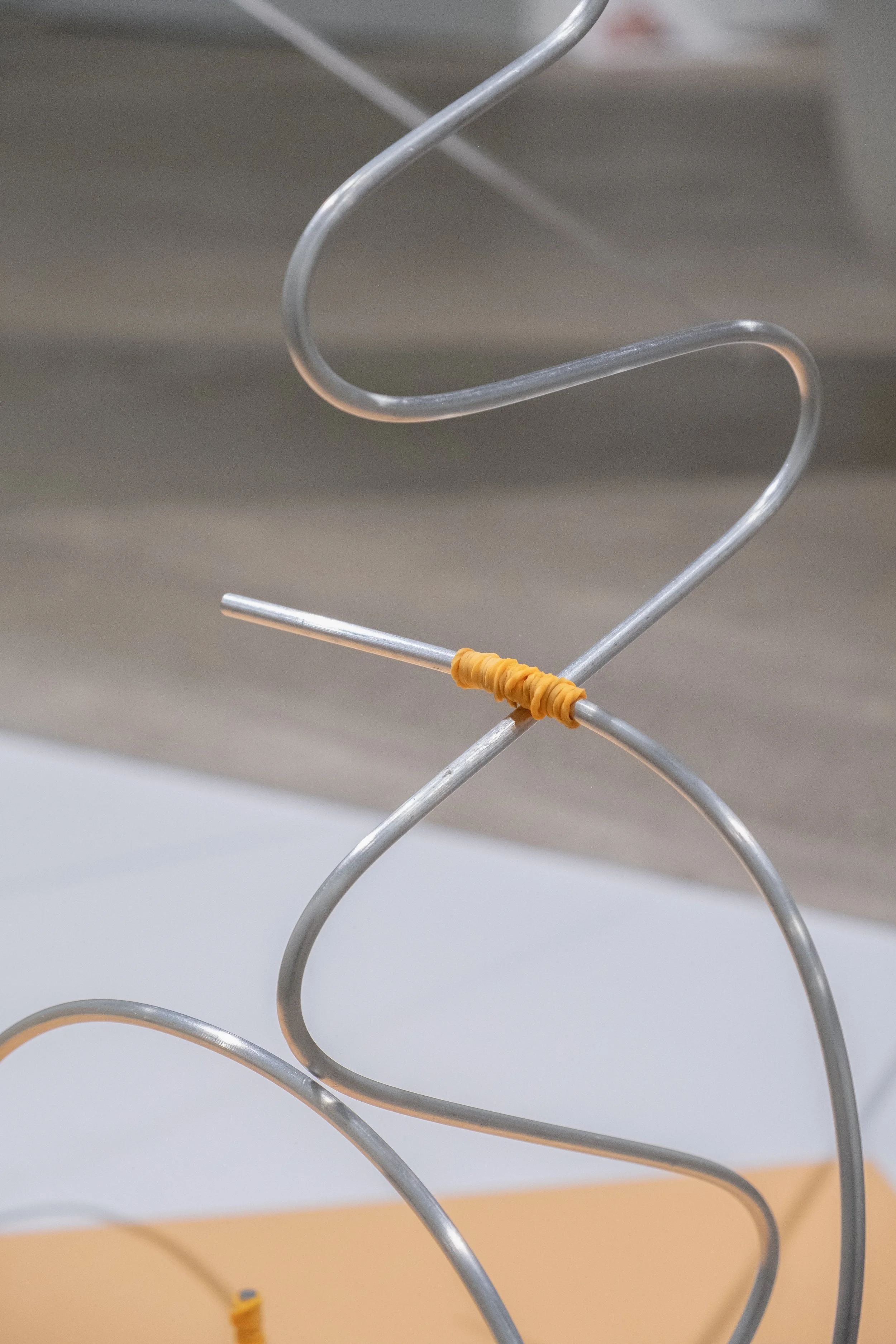 Clearly embarrassed, 2024. Aluminum rods, elastic bands, zip ties, tape